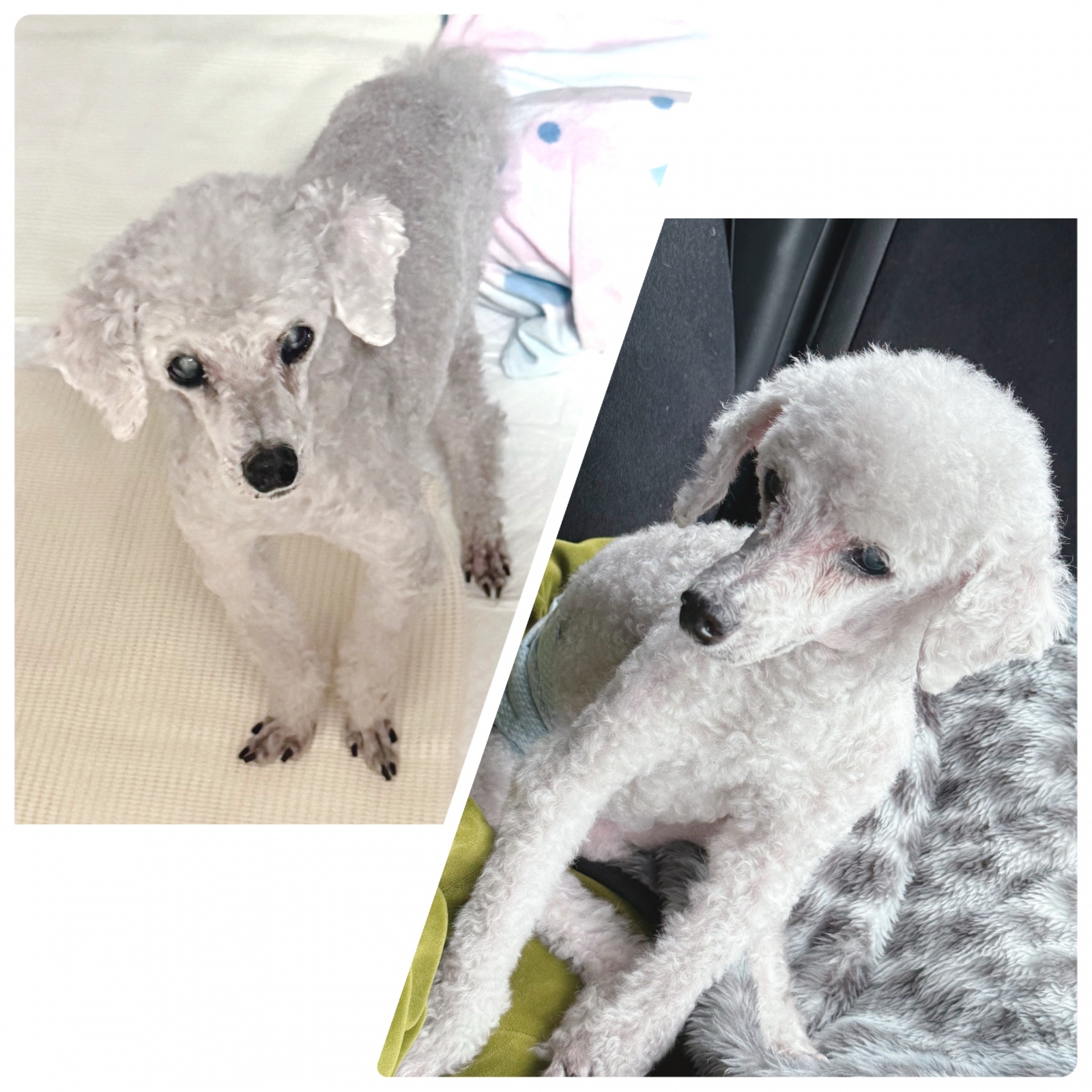 トリミング 2ヶ月毎のトリミングに行ってきました。かろうじてシャンプードライとお顔や身体の程カットはチャオチャオのママさんにお願いして、お腹や脇や鼠径部など内側は抵抗するので細かい所は私が抱っこしたり支えたりしてやって貰っています。19歳と4ヶ月、足腰が弱くなりトリミングは本当に大変なのに今回も綺麗にして貰いママさんには本当に感謝です。